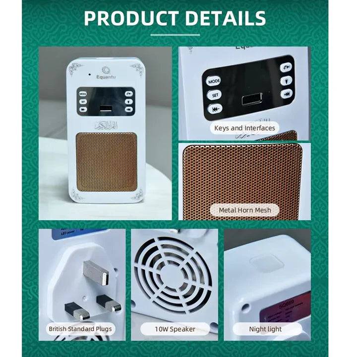 High-Quality Sound: Delivers clear and immersive audio for the Holy Qur’an and FM radio broadcasts.
